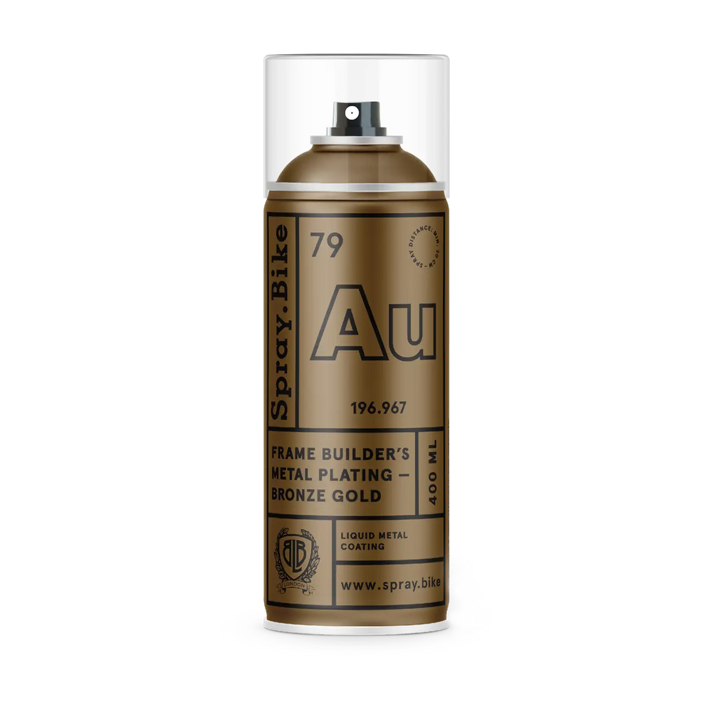 Der hochwertige bronze-/goldfarbene Lack mit einem hohen Metallanteil trocknet hart und kann nicht abgerieben werden. Er ist für direktes Überlackieren geeignet. Benutze unsere Frame Builder’s Grundierung zuerst, falls die Oberfläche rau sein sollte. In der Vollendung kann es ein wenig glänzen. Es ist nur eine Schicht notwendig.
